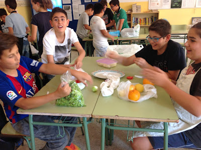 Aquesta tarda hem elaborat unes amanides fantàstiques. Per grups, hem acordat els ingredients que li volíem posar. Els enciams, els han collit els nostres companys i companyes de primària del nostre hort escolar.